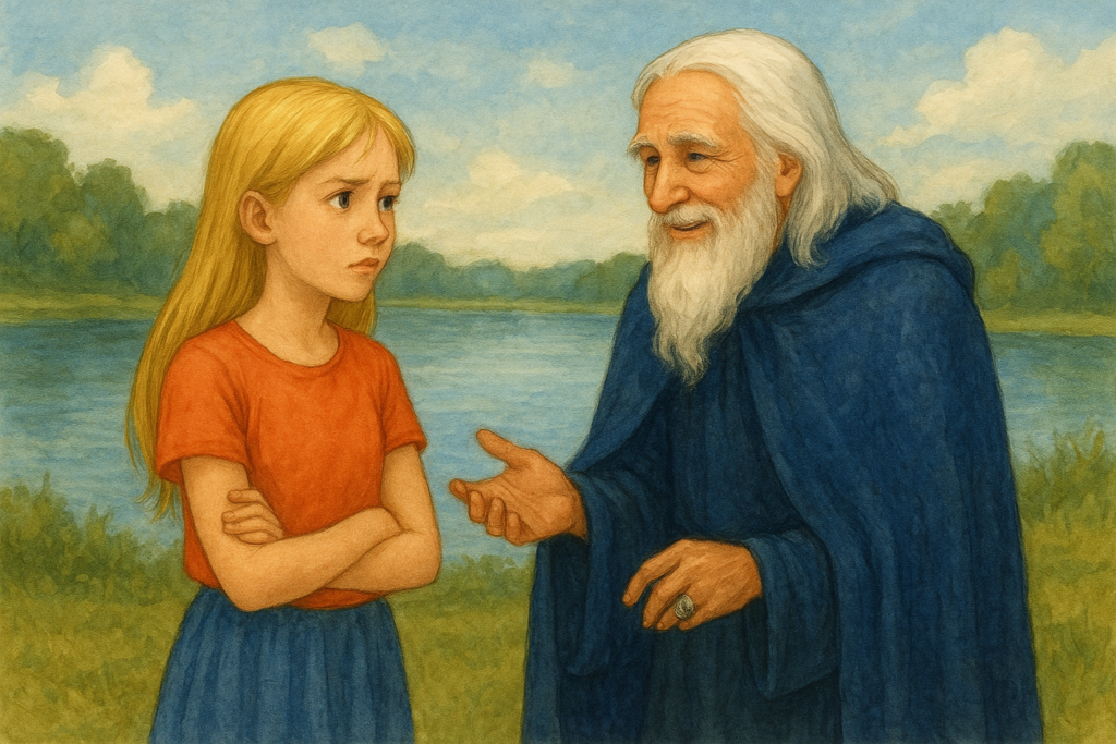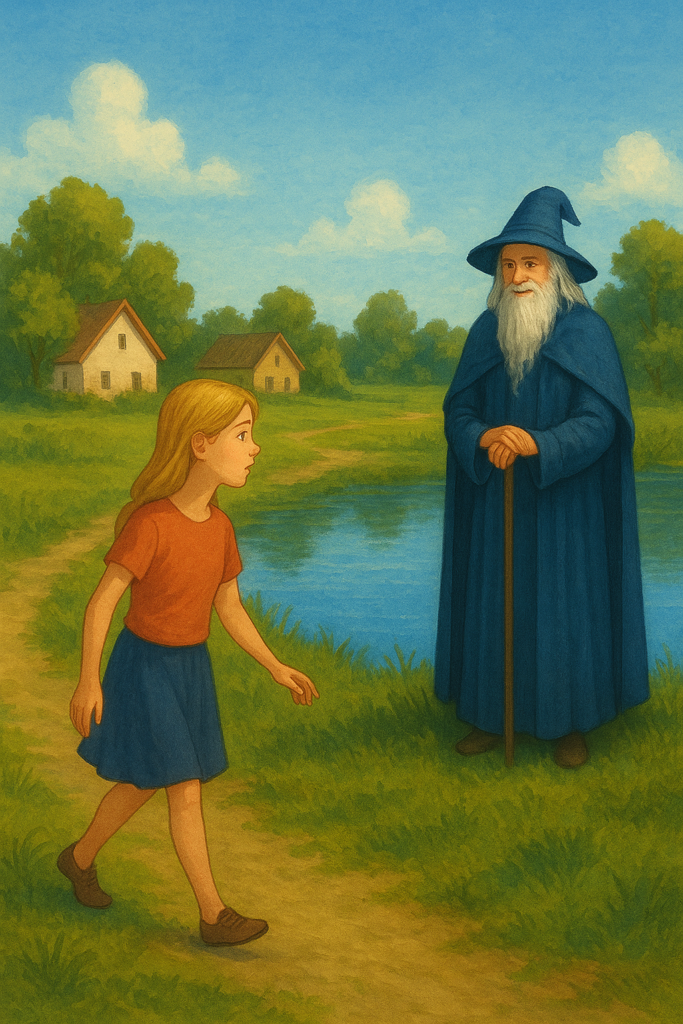 Luna felt weightless—like she was being lifted by a whirlwind. When the light faded, she found herself standing on a hill overlooking a vast valley.