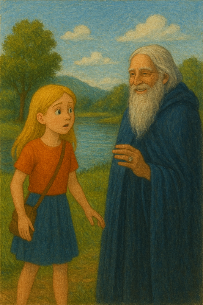 The voice came. Luna looked around and saw an old man standing nearby. He had long white beard, and he wore a long blue cloak. On his finger gleamed a strange silver ring engraved with mysterious symbols.