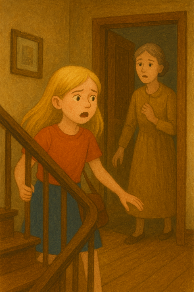 Luna ran downstairs, her heart pounding. She felt scared.